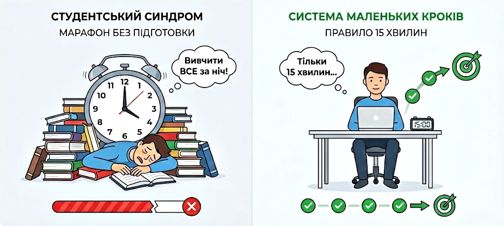 У наступній частині ми розберемо Систему маленьких кроків і чому правило «вчитися по 3 години у вихідні» — це шлях в нікуди.