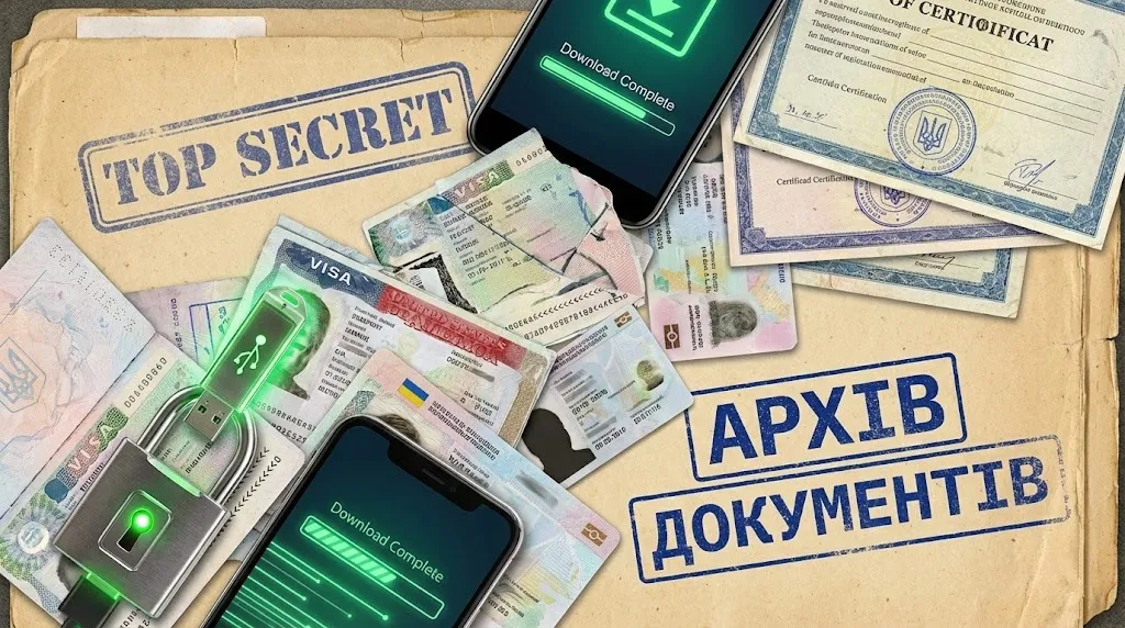 Рівень 1: “Дія” та скріншоти Це мінімум. Зайдіть у “Дію” просто зараз. Натисніть на документ -> “Повна інформація” -> “Сформувати PDF”. Збережіть ці файли у пам’ять телефону (“Файли” -> “На iPhone/На пристрої”). Зробіть якісні фото/скани паперових паспортів, ІПН, свідоцтв про народження дітей, документів на квартиру та машину. Але зберігати це просто в “Галереї” — небезпечно. Якщо телефон потрапить у чужі руки, ви подаруєте шахраям своє життя.