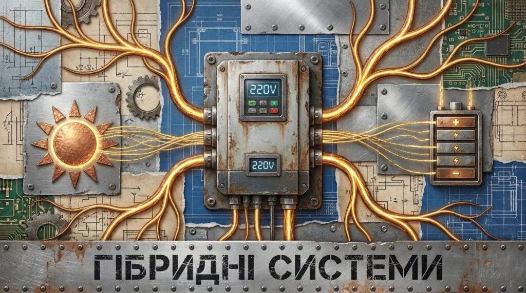 Чому це “Розумно”? Гібридний інвертор (наприклад, Deye, Victron або Luxpower) працює як менеджер. Він сам знає, коли заряджати акумулятор від мережі, коли брати енергію від сонця, а коли — віддавати її в дім.