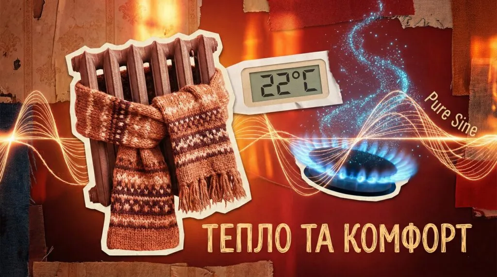 Проблема чистої синусоїди: Котел — це примхлива техніка. Він не буде працювати від дешевого автомобільного інвертора, бо йому потрібна “чиста синусоїда”. Дешеві пристрої дають “апроксимовану” (сходинками), від чого насос гуде, гріється і вмирає.