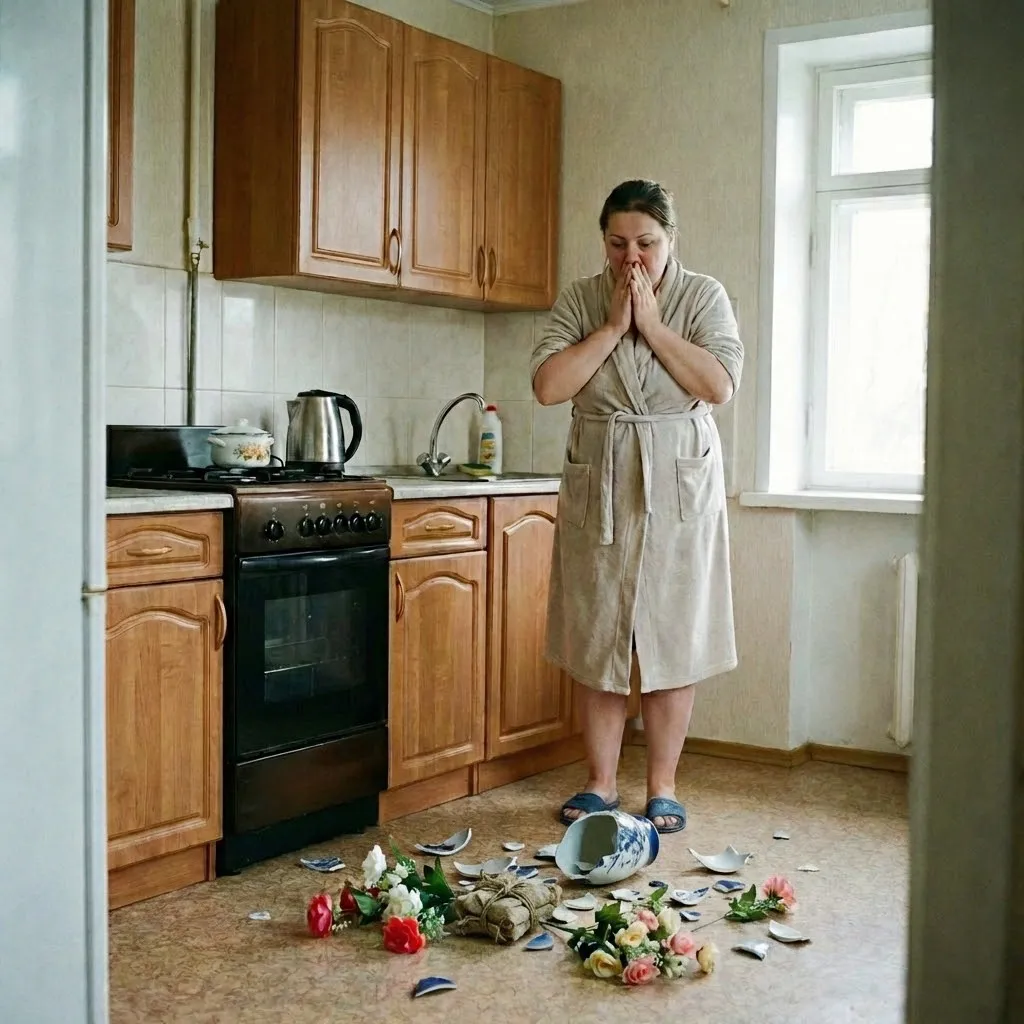 Ось і в цьому випадку винуватиця нещастя, вродлива молода жінка з рудуватим волоссям, стояла поруч в оточенні уламків, що весело переливалися в сонячному промінні. Вони розлетілися широким віялом по всій кімнаті, осипавши блискучими крапельками різного розміру всю підлогу. Один зі шматочків, зрикошетивши від підлоги, відлетів у бік хуліганки й зачепив ногу з підкачаною догори штаниною.